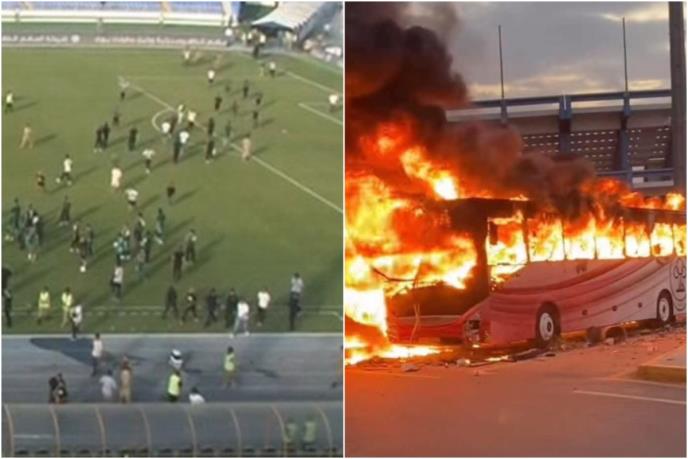 Igrači i fudbalski zvaničnici pobegli su sa stadiona zbog nereda koji su izazvali navijači ispred objekta. Na snimcima objavljenim na društvenim mrežama vidi se sukob navijača i policije unutar i ispred stadiona.