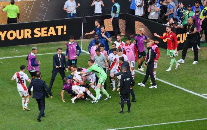 Poražen je River od Intera u direktnom duelu za plasman u narednu rundu Svetskog klupskog prvenstva rezultatom 2:0, golove su postigli Espozito u 72. i Bastoni 93. minutu, ali je od same utakmice daleko zanimljivije bilo ono što se dešavalo posle njenog kraja kada je došlo do opšte tuče fudbalera.