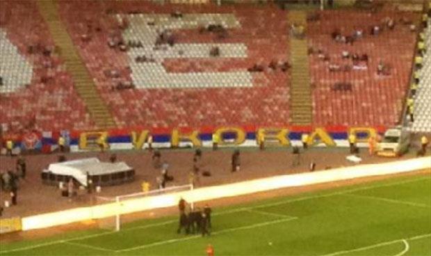 BEOGRAD - Reprezentativce Hrvatske i novinare iz susedne države dočekala je na stadionu Crvene zvezde velika zastava sa natpisom Vukovar na ćirilici.