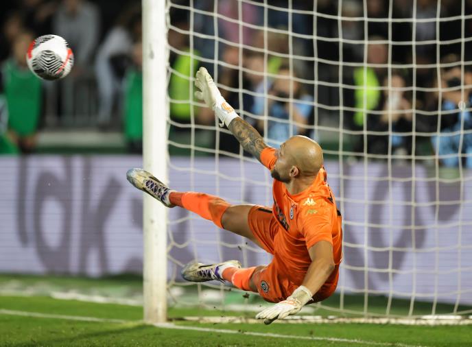 Roganović i Kalulu su gađali donji desni ugao gola AEK, čak njihovi udarci nisu uopšte bili loši, ali... Pročitani su od strane golmana rivala koji se bacio na vreme i "izvadio" loptu iz ugla.