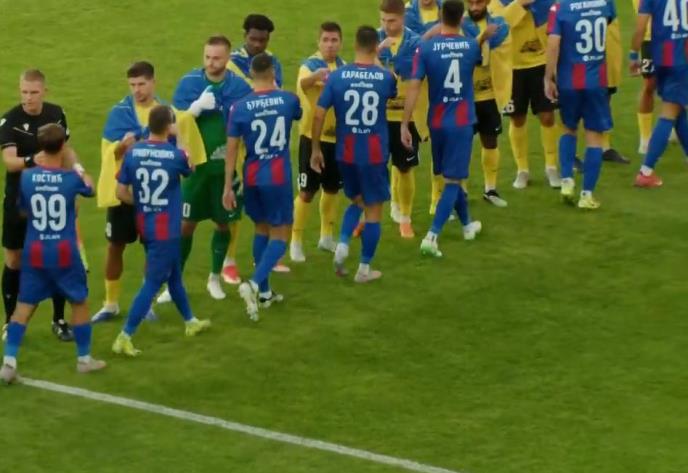 Igrači Oleksandrije su izašli na teren ogrnuti zastavama Ukrajine, a zatim su odbili da se rukuju sa fudbalerima srpskog kluba.