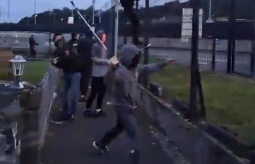Na snimcima dostupnim na društvenim mrežama može se videti kako jedna grupa navijača vatrometima gađa drugu, a "BBC" kaže da su epilog svega - povrede dve osobe, jednog tinejdžera i jednog čoveka u dvadesetim godinama.