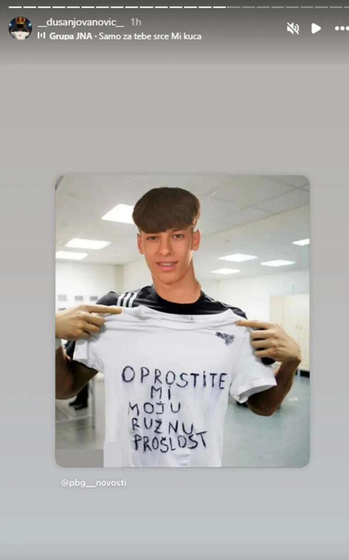 On je podelio montažu sa Instagram stranice, gde se ispred njega vidi majica "Oprostite mi moju ružnu prošlost", aludirajući na to da je nekada igrao za Zvezdu.