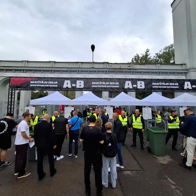 No, utakmici u Rigi je prethodio veliki skandal u organizaciji domaćina. Naime, obezbeđenje nije dozvoljavalo ulaz navijačima koji su imali bilo kakvo obeležje Srbije. Navijači su morali da skinu sa sebe svako moguće obeležje - dres, majicu, šal, kačket, dok ni zastavu ne mogu da unesu na tribine... Zaista sramotno od strane domaćina.
