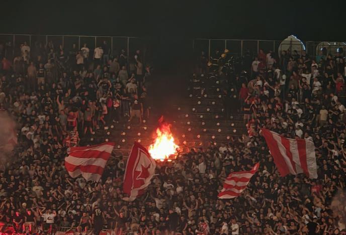 Navijači gostujućeg tima su zapalili nekoliko stolica, što je izazvalo manji požar, ali su vatrogasci pravovremenom intervencijom ugasili požar pre nego što se proširio.