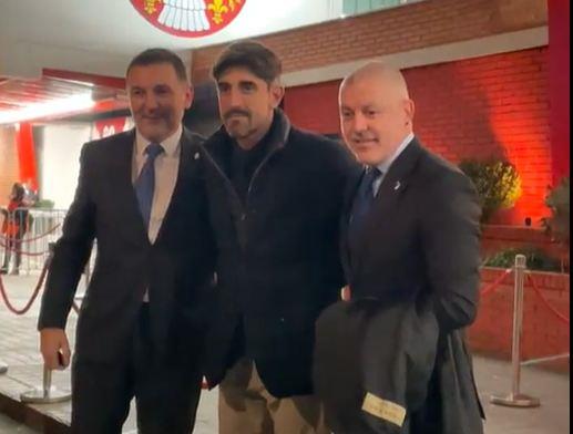 Paunović je na stadion Crvene zvezde stigao u društvu čelnika Fudbalskog saveza Srbije, generalnog sekretara Branka Radujka, kao i Nikole Lazetića, predsednika Fudbalskog saveza Beograd.