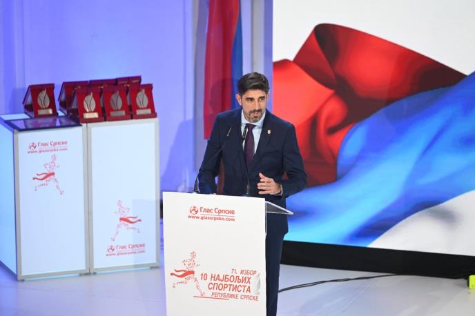 „Poštovani domaćini, uvaženi sportisti, treneri, članovi žirija, dragi gosti, prijatelji sporta. Čast mi je i zadovoljstvo što sam večeras sa vama, ovde u Banskom dvoru, na manifestaciji koja iz godine u godinu čuva tradiciju, nagrađuje sportska dostignuća i pruža inspiraciju mladim generacijama Republike Srpske. Moram ovom prilikom da pomenem ime čoveka koji je baš ovde u Banjaluci ostavio neizbrisiv trag i prošle sezone sa Borcem napravio senzacionalan uspeh u Ligi konferencija, a nije više među nama. Naravno, reč je o Mladenu Žižoviću koji je preminuo na utakmici u Lučanima i članovima njegove porodice želim još jednom da uputim izraze najdubljeg saučešća.