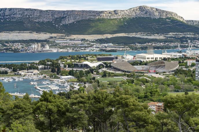 Stadion Poljud je izgrađen 1979. godine za potrebe Mediteranskih igara. Stadion je poznat po "školjkastom" dizajnu, a kapaciteta je 34.000 mesta.
