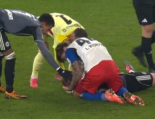 Ipak, u jednom trenutku susreta fudbal je pao u drugi plan. Nakon snažnog sudara Mire Muhajma i Rasmusa Kristensena, ozbiljnije je nastradao danski reprezentativac iz redova Ajntrahta. Dok su oba igrača ostala da leže na travi, mladi štoper HSV-a Luka Vušković brzo je reagovao kada je primetio da Kristensen ima veliki problem.
