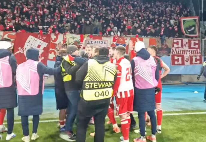 Mladi navijač Crvene zvezde je utrčao na teren, sa spremnim telefonom za fotografisanje sa igračima. Dok je trčao prema fudbalerima, jurilo ga je obezbeđenje, ali je Aleksandar Katai stao između njih i dečaka.