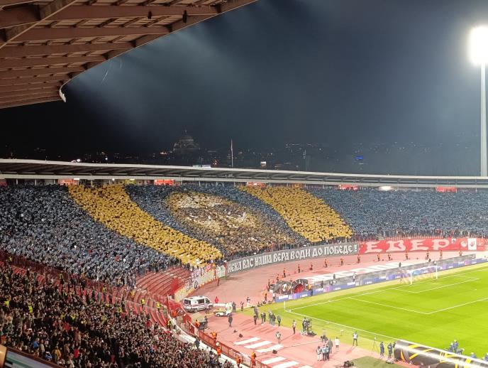 Fudbaleri Crvene zvezde dočekuju Lil u revanš meču šesnaestine finala Lige Evrope, a navijali domaćeg tima pred start meča napravili su koreografuju.