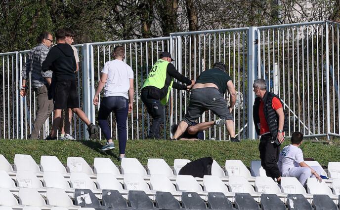 Po završetku utakmice u kojoj je rezultat glasio 2:2, došlo je do tuče na tribini, a kako su kamere zabeležile, ba tribini se našao i fudbaler gostiju Luka Zorić.