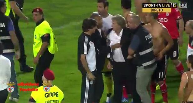 Strateg lisabonskih "Orlova" je uleteo među redare koji su uhvatili jednog od navijača koji je uleteo u teren da proslavi pobedu svog tima. Natezanje je trajalo dosta dugo, a Žesus je i sam počeo da vuče i udara policajce po licu.