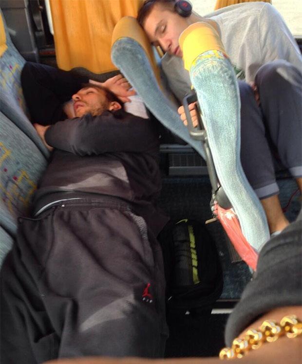 Ekspedicija crno-belih krenula je na put autobusom u Novo Mesto gde će Partizan sutra igrati meč trećeg kola Jadranske lige sa Partizanom. Amerikanac je fotografisao saigrače koji spavaju, a onda je to komentarisao sa navijačima.