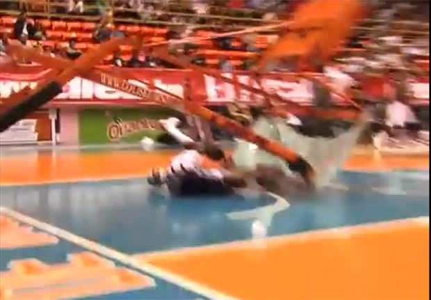 Nakon jedne njihove tačke - egzibicije, tačnije zakucavanja jednog od učesnika, cela konstrukcija se obrušila na igrača i pala mu na glavu.