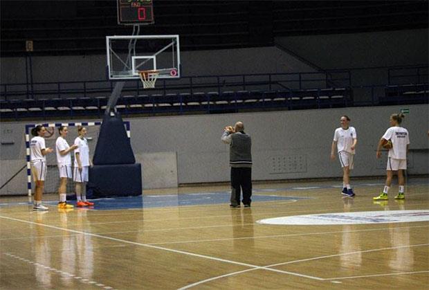 Miša Tumbas je na poluvremenu šutirao loptu ka košu, a dobio je ovacije navijača i igračica.
