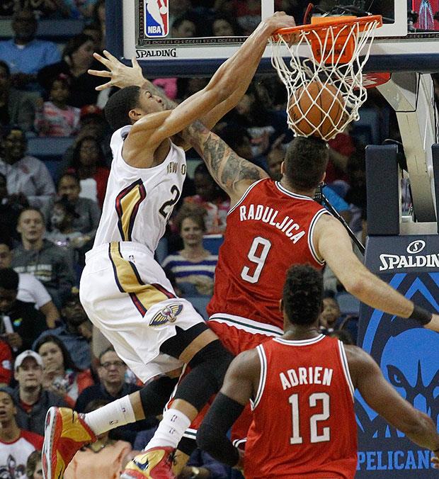 NJU ORLEANS - Košarkaš Nju Orleansa Entoni Dejvis fenomenalno je zakucao preko igrača Milvokija Miroslava Raduljice na meču dva kluba u NBA ligi.