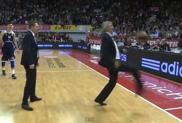 Trener košarkaša Bajerna, popularni Kari, pokazao je perfektno fudbalsko umeće sa košarkaškom loptom posle pobede nad Realom u Evroligi (85:83).