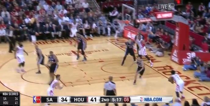 Nakon dodavanja od strane Hardena, Beverli je ostao na šutu za tri poena u uglu terena, Đinobili mu jeste parirao prilikom šuta, ali niko, pa ni sam Beverli, nije očekivao da će ovoliko loše šutirati.