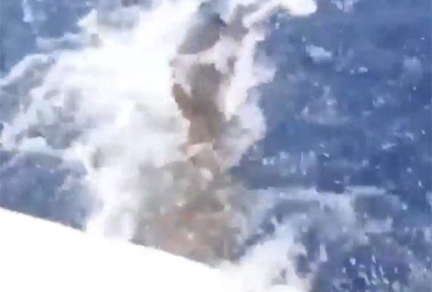 Na video snimku vidi se kako uzbuđeni Karmelo dovlači na brod ogromnu morsku neman.