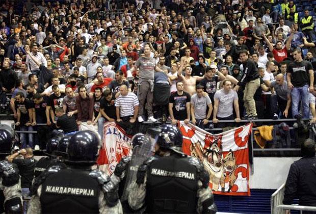 BEOGRAD - Navijači Crvene zvezde popularne "Delije" potukli su se sa Žandarmerijom na duelu sa Partizanom u petom kolu košarkaške Superlige Srbije.