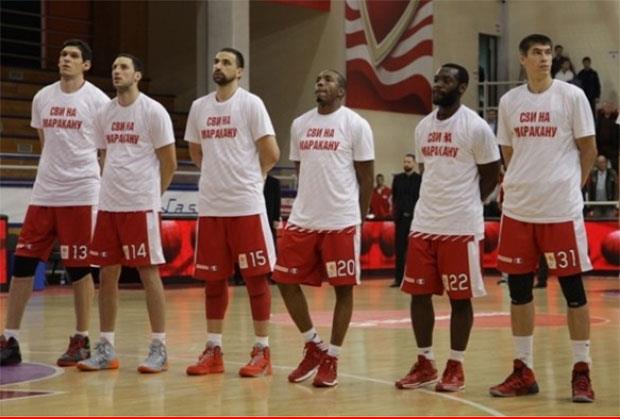 Košarkaši crveno-belih su na zagrevanje izašli u majicama na kojima je pisalo: "Svi na Marakanu".