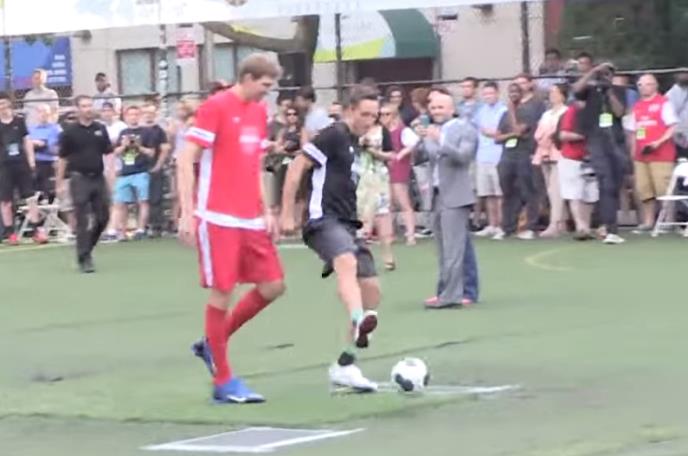 Meč je igran u Njujorku, a na snimku ćete videti Neša koji je želeo da se što bolje pokaže u svom drugom omiljenom sportu, ali i Novickog koji na fudbalskom terenu sa svojih 211cm izgleda kao da se nikada nije bavio sportom.