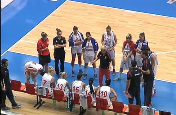 Naše najbolje košarkašice prikazale su puno bolju igu nego na prvoj utakmici turnira u Karlovim Varima kad su poražene od selekcije Kanade (54:73). Posle nešto sporijeg početka, izabranice selektorke Marine Maljković su u intervalu od 8. do 12. minuta napravile seriju 13:5 i prešle u vođstvo – 25:24.