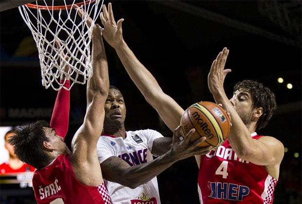 MADRID - Košarkaši Francuske plasirali su se u četvrtfinale Svetskog prvenstva u Španiji, pošto su u osmini finala u Madridu nadigrali Hrvatsku 69:64 (9:15, 16:7, 23:12, 23:30).