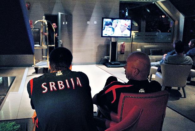 Bogdanović je na meču protiv Grka odradio posao za svaku pohvalu, pa je u društvu tim menadžera srpske reprezentacije Neše Ilića seo u kafić i u opuštenoj atmosferi ispratio ishod drugih utakmica osmine finala.