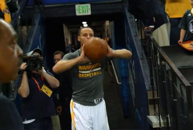 Na društvenim mrežama pojavio se video snimak na kome se vidi da je Kari pogodio koš iz tunela na putu ka svlačionici.