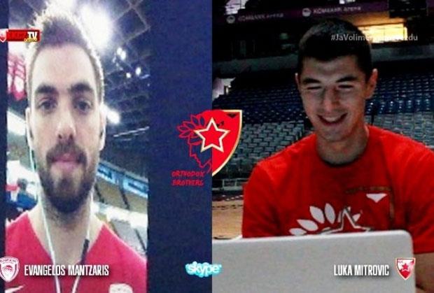 BEOGRAD - Kapiten košarkaša Crvene zvezde Luka Mitrović i prvotimac Olimpijakosa Evangelos Madzaris razgovarali su putem skajpa uoči meča 4. kola Evrolige u Kombank areni.