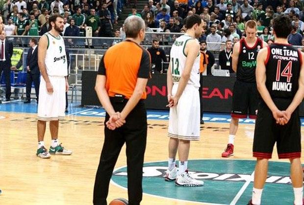 Kada je oficijelni spiker u "OAKA Areni" pozvao publiku i igrače na minut ćutanja, deo pristalica Panatinaikosa počeo je da zviždi i skandira protiv svog najvećeg rivala Olimpijakosa, inače bratskog kluba crveno-belih.