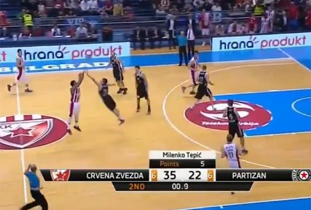 Vilijams je tačno sekund pre isteka vremena šutnuo skoro sa pola terena i pogodio za ubedljivo vođstvo Crvene zvezde 38:22 na poluvremenu utakmice 10. kola ABA lige.