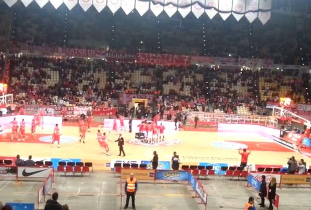 PIREJ - Uoči početka utakmice 9. kola grupe D Evrolige između Olimpijakosa i Crvene zvezde u dvorani "Mira i prijateljstva" u Pireju sa razglasala su odjekivale pesme navijača beogradskog kluba.