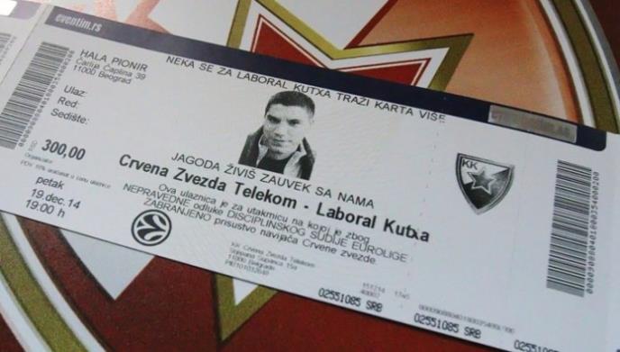 Košarkaši su pozvali navijače da kupe karte za meč sa Laboralom. Na karti je slika ubijenog Ivkovića s porukom: "Jagoda, živiš zauvek s nama".