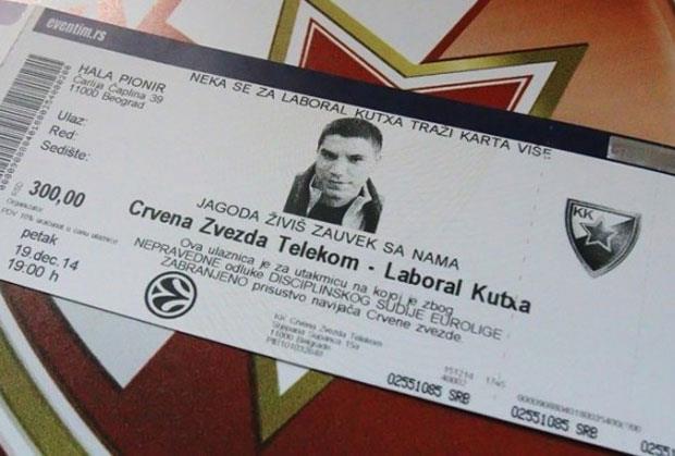 "Iako se meč igra bez prisustva publike, Crvena zvezda je u utorak pustila u prodaju simbolične ulaznice koje se po ceni od 300 dinara mogu kupiti na svim poslovnicama Eventima. Celokupna akcija potekla je posle nepravedne odluke disciplniskog sudije Evrolige kojom je Crvena zvezda Telekom kažnjena sa 50.000 evra.