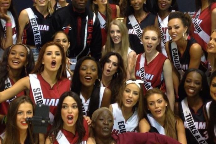 Slobodno vreme Anđelka i njene koleginice misice iz ostalih zemalja iskoristile su da obiđu dvoranu NBA tima Majami Hit i da se slikaju u dresovima nekadašnjeg šampiona NBA.