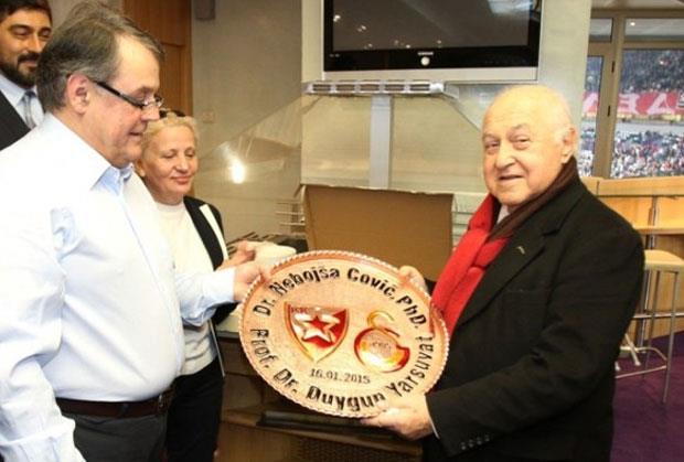 BEOGRAD - Predsednik Košarkaškog kluba Crvena zvezda Nebojša Čović i prvi čovek Galatasaraja Dujgun Jarsuvat zajedno su iz svečane lože pratili meč trećeg kola E grupe Evrolige između dva kluba.
