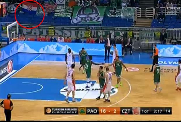 Navijači Panatinaikosa, koji imaju bratske odnose sa pristalicama zagrebačkog Dinama Bed Blu Bojsima su iznad klupe Crvene zvezde razvili hrvatsku zastavu uz koju je i zastava Crvene zvezde.