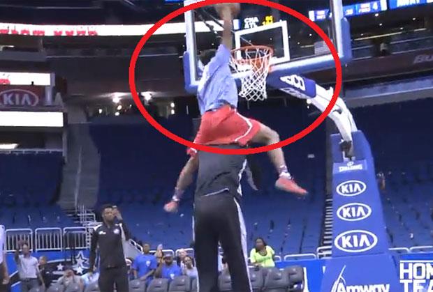 Zbunjeni centar izašao je na teren i licem se okrenuo prema košu, ali Sanders je uspeo da ga preskoči i da zakuca.