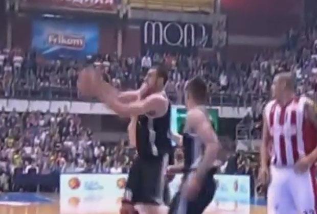 BEOGRAD - Košarkaš Crvene zvezde Jaka Blažič udario je u oko centra Partizana Nikolu Milutinova tokom prve utakmice polufinala plej-ofa ABA lige.