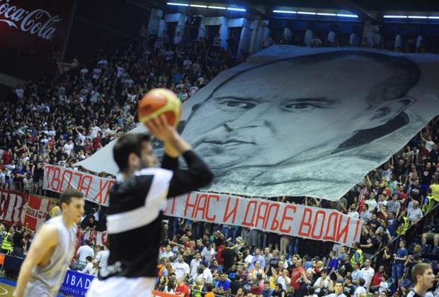 BEOGRAD - Navijači Crvene zvezde su uoči početka utakmice 7. kola utakmice Superlige Srbije sa Partizanom razvili transparent kako bi odali počast ubijenom vođi navijača, Veliboru Dunjiću.