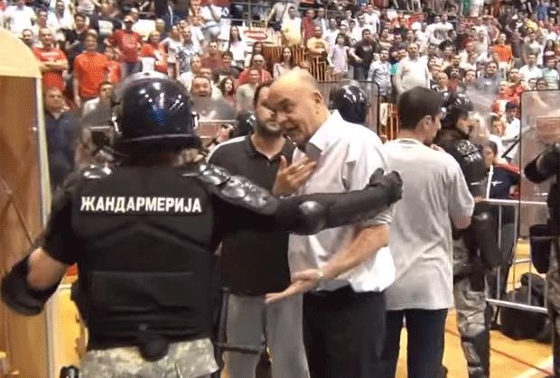 Naime, na snimku je zabeležena sitaucija po završetku prvog poluvremena kada navijač Crvene zvezde, koji stoji iza ograde kraj terena, vređa i pljuje Vujoševića. Trener Partizana, međutim, nije reagovao na taj atak, ali je napad prijavio pripadniku Žandarmerije koji je stajao na ulazu u tunel hale "Pionir". Na snimku se ne vidi da je Žandarmerija reagovala.