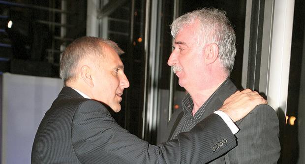 Čim se na vratima pojavio legendarni Željko zna zbog koga je došao među crno-bele, počeli su da sevaju blicevi fotoaparata, a Željko Obradović se srdačno pozdravio s Kićom. Dva Čačanina, možda dva i najzaslužnija čoveka za evropske visine Partizana, ostali su dugo zagrljeni.