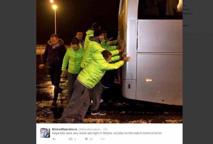 Foto: Tviter, Košarkaši, Mega Leks, Autobus, Sneg, Ljubljana