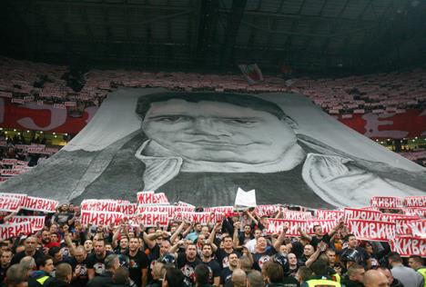 A group of UltrAslan (Galatasaray) with a message for Serbian fans:Marko Ivkovic didnt die, he lives in hell!