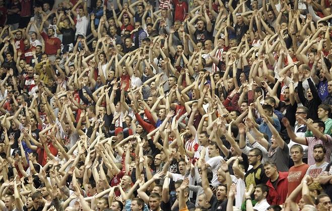 Navijači Crvene zvezde ispunili su tribine hale "Pionir" na meču svog kluba protiv Unikahe.