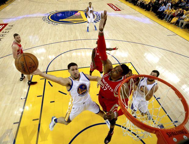 Šampion NBA Golden Stejt pobedio je Hjuston sa 115:106 i tako poveo sa 2:0 u prvom kolu plej-ofa, iako je igrao bez najboljeg košarkaša lige Stefa Karija, koji je propustio utakmicu zbog povrede članka.