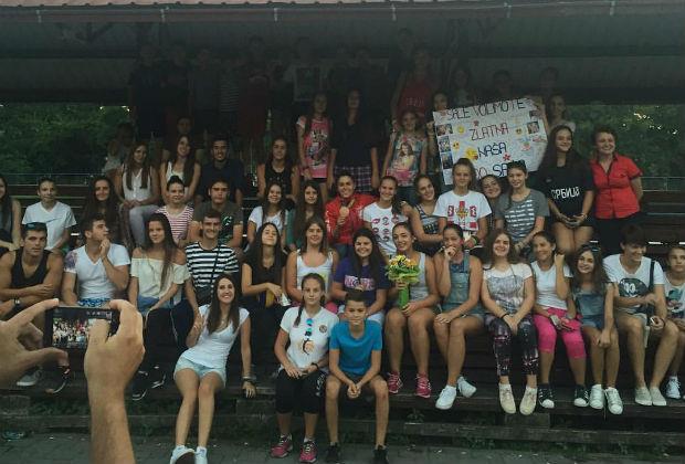 Košarkašica Srbije Saša Čađo i plivač Mihajlo Čeprkalo dočekani su uz pesmu, transparente i baklje, te zastave Srbije. Na dočeku je bio i fizioterapeut ženske košarkaške reprezentacije Srbije Branko Stojnić, takođe iz Banjaluke.